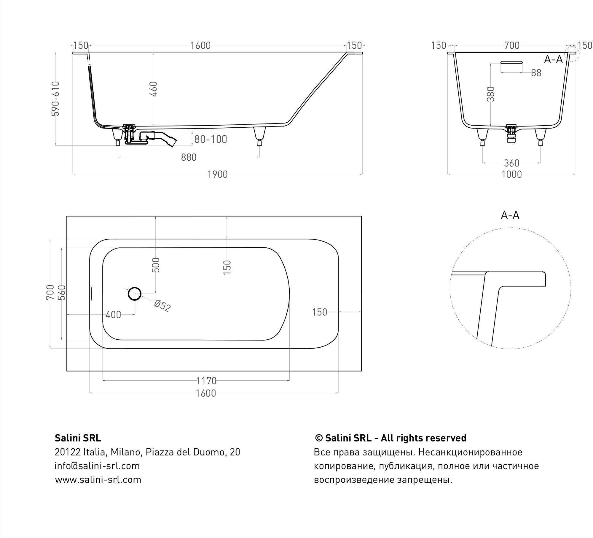 Размер ванны (Д.;Ш.;В.; см.) - 190x100x59-61