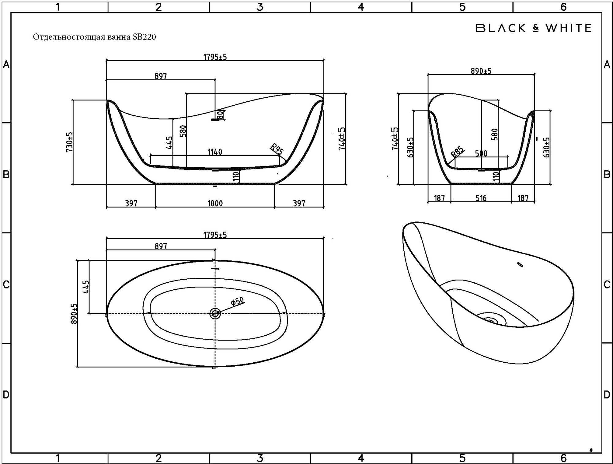 ванна акриловая black&white swan sb220 179,5x89 белый глянец