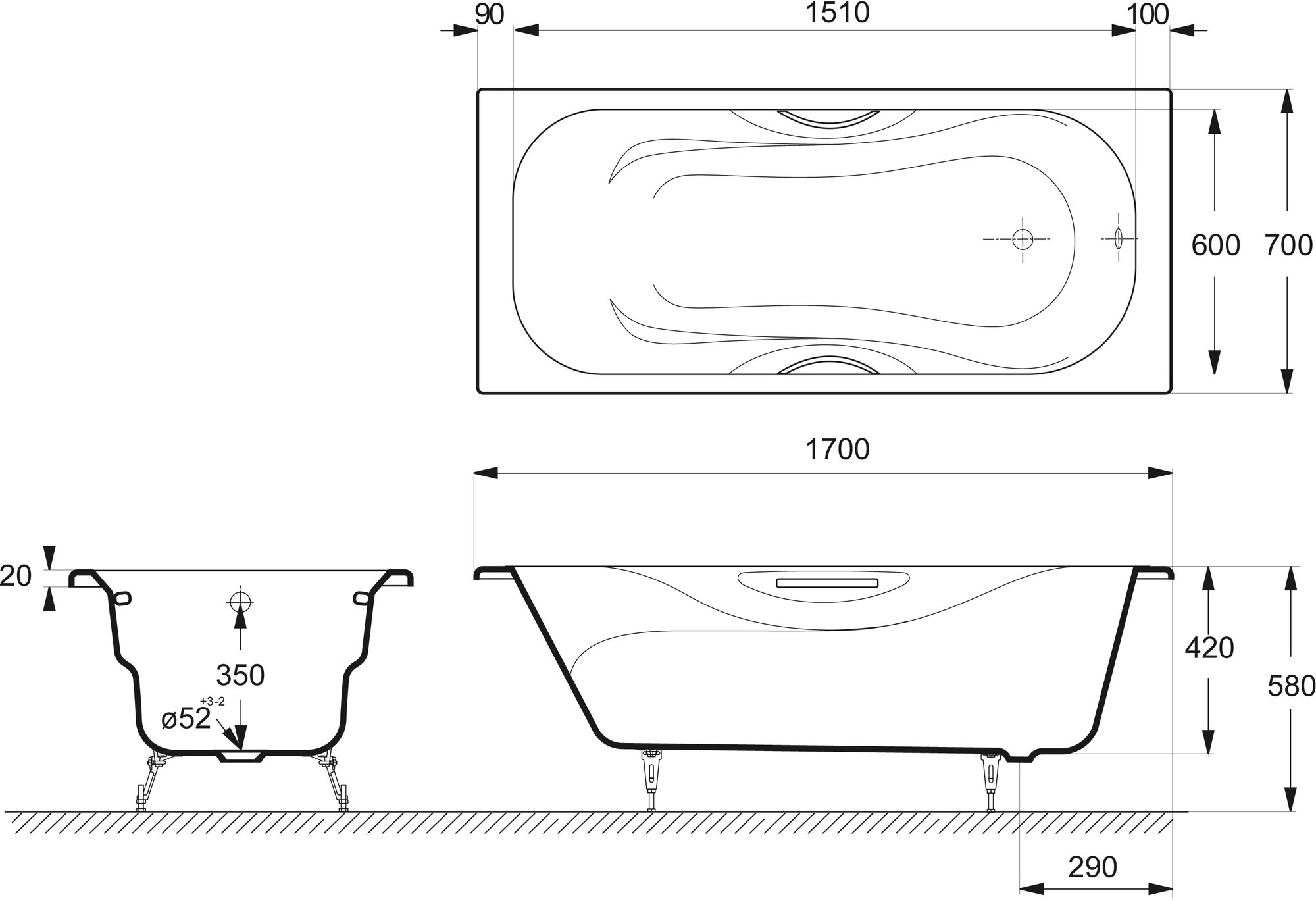 Усовершенствованная конструкция чугунной ванны имеет гладкие скругленные профили бортов. Ванна идеально сочетает в себе изысканность формы, лаконичность линий и удобство в применении.