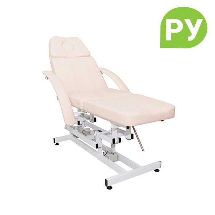 Регулировка высоты осуществляется при помощи электропривода. Для проведения массажа кушетка раскладывается в горизонтальное положение, в подголовнике есть отверстие для лица. Регулировки угла наклона сидения и спинки - пневматические. Ножные опоры регулируются механическим способом. Металлический каркас высокой прочности выдержит нагрузку до 150 кг. Для комфортного проведения длительных процедур кушетка оснащена удобным анатомическим матрасом. Мягкие широкие подлокотники поднимаются для удобной посадки в кресло.