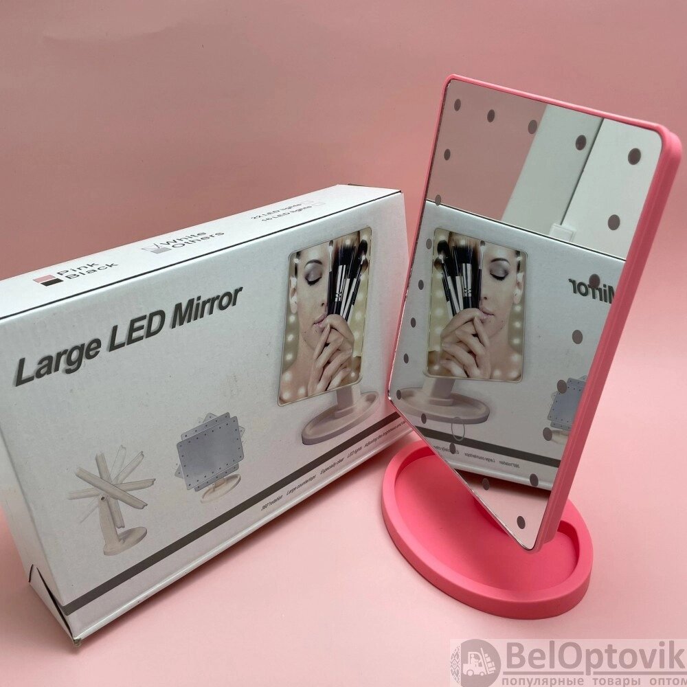 АКЦИЯ Безупречное зеркало с подсветкой Lange Led Mirror Black/White/Pink Розовое, батарейка