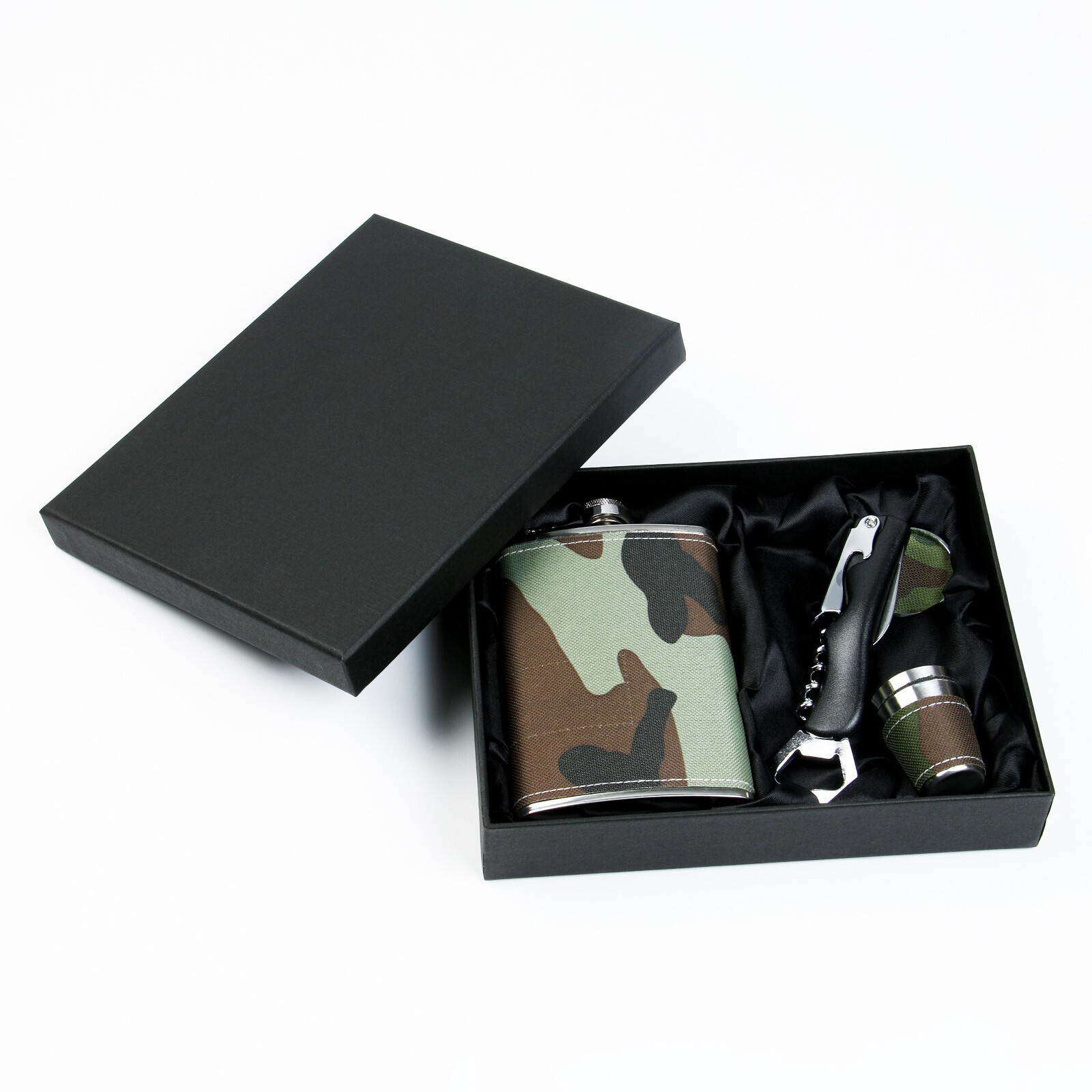 Подарочный набор 5 в 1 "Полевой": фляжка 270 мл, 2 рюмки,брелок, открывалка-штопор, 17 х 21.5 см 112