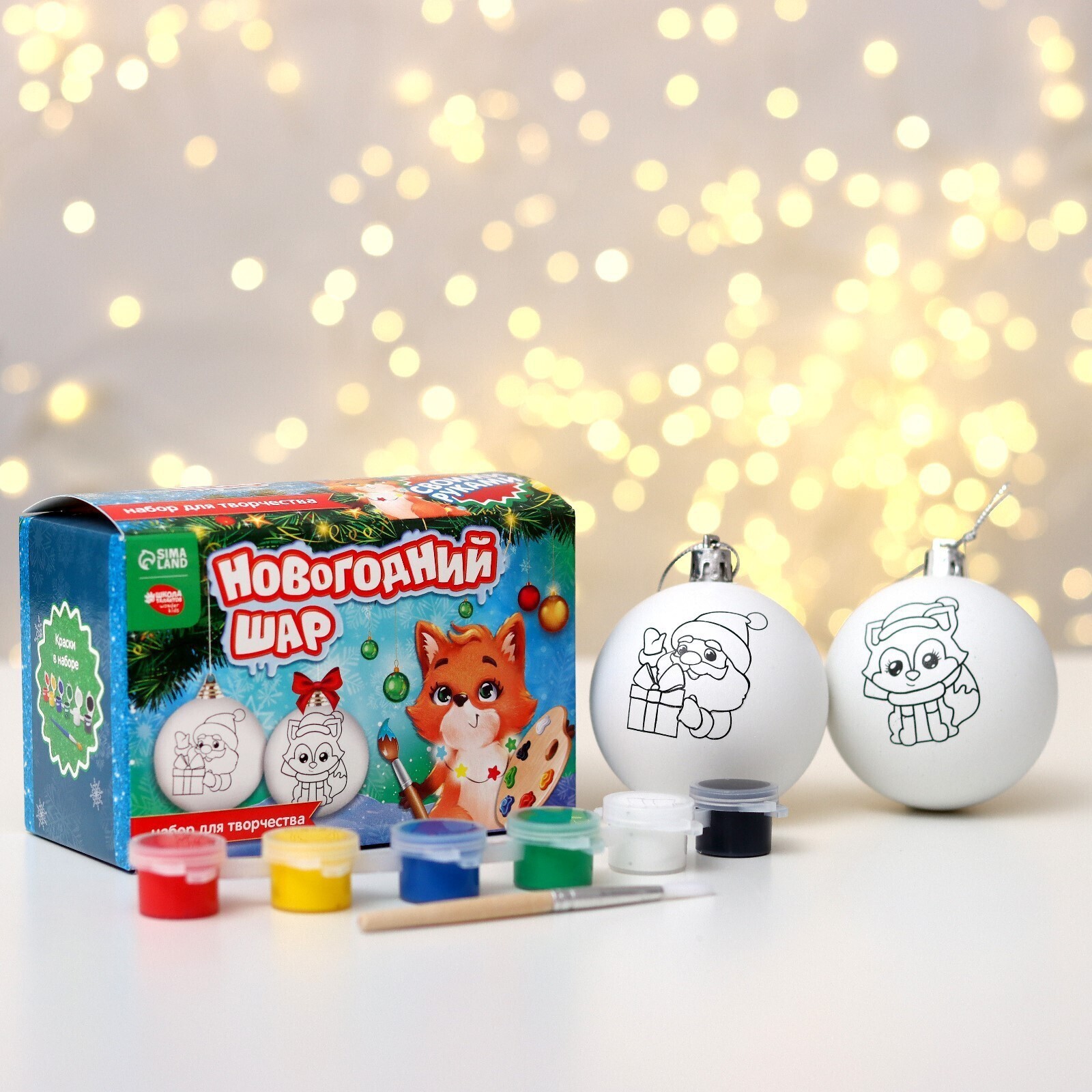 Набор для творчества. Ёлочные шары под раскраску «Новый год» + краски, набор 2 шт.