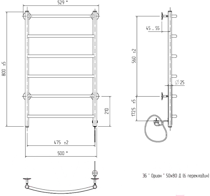 Полотенцесушитель электрический ZorG Орион Лесенка 50x80