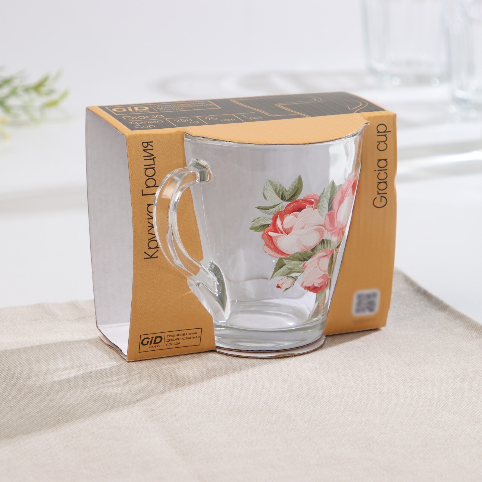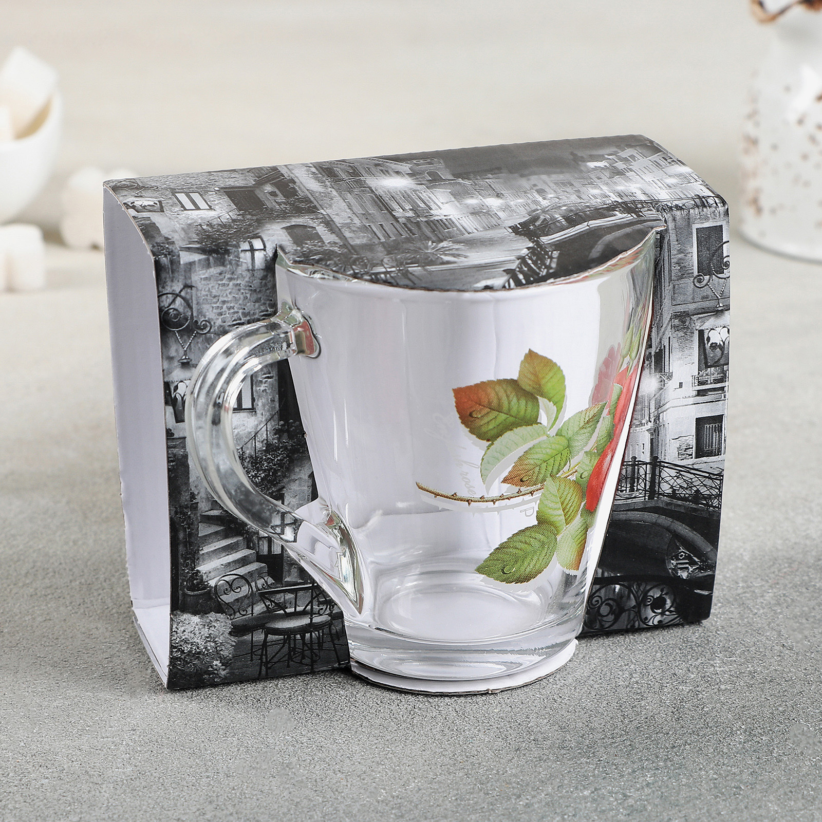 Кружка стеклянная «Алая роза», 250 мл, в подарочной упаковке