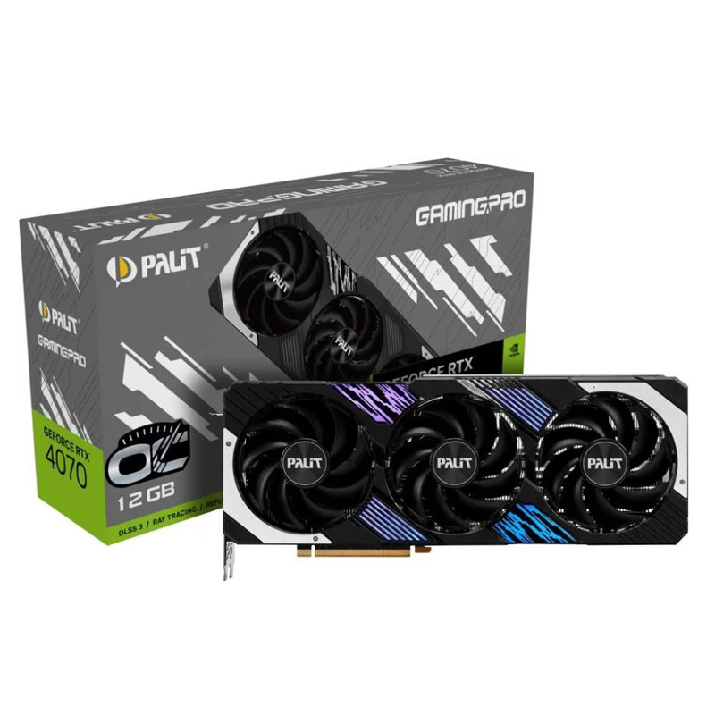 Видеокарта Palit NVIDIA - GeForce RTX 4070 GamingPro OC, PCI-E 4.0 16x, GDDR6X 12GB 192bit, 1x HDMI, 3x DP, max 7680 x 4320, 329мм, Full Height, NED4070H19K9-1043A