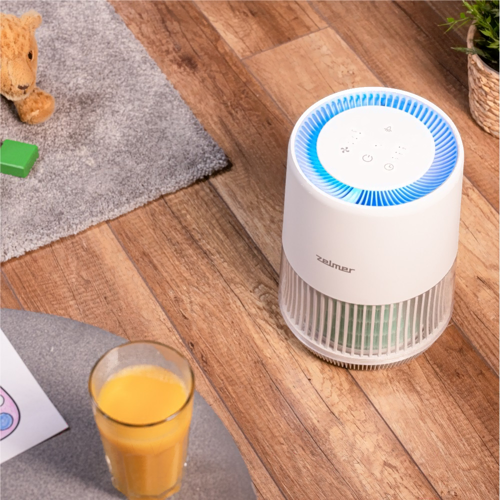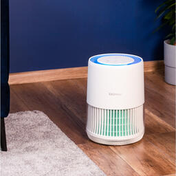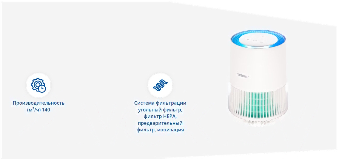 • Индикация включения, качества воздуха (синий — хорошее качество, оранжевый — нормальное качество, красн), замены фильтра