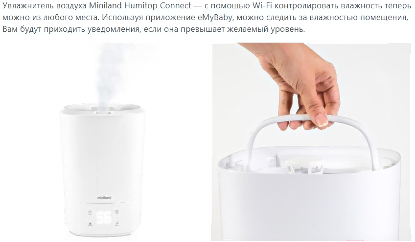 Ультразвуковой увлажнитель воздуха Miniland Humitop Connect / 89318