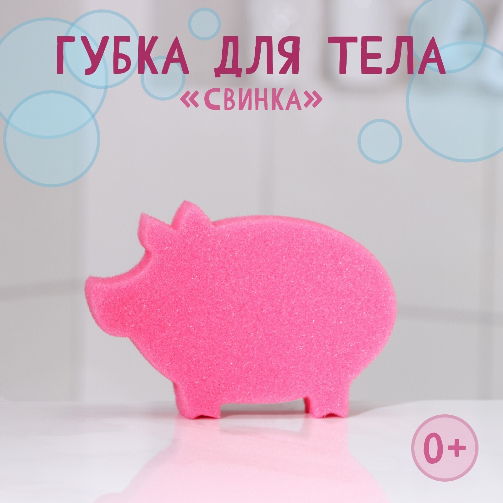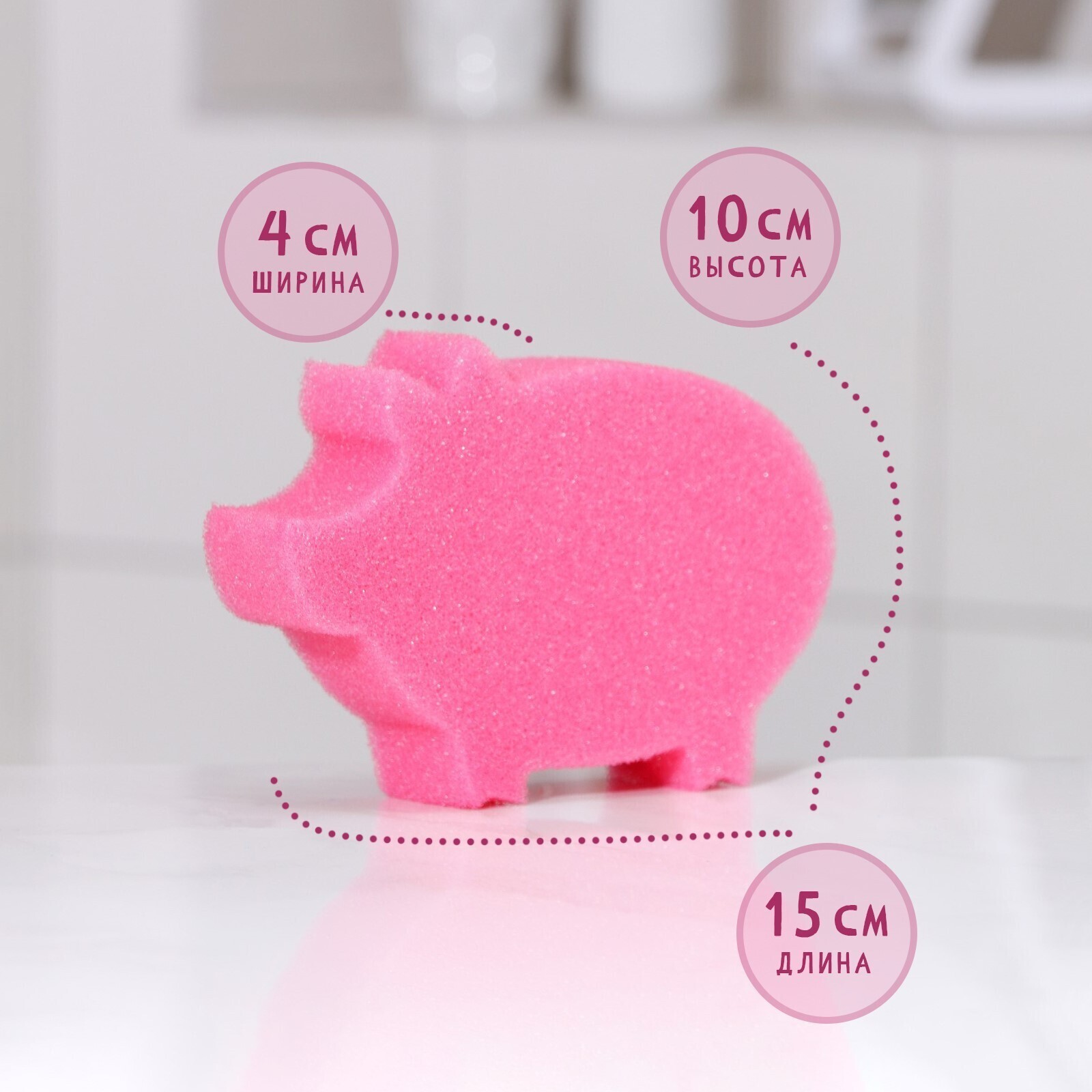 Губка для тела детская «Свинка», 110×155×40 мм, цвет розовый