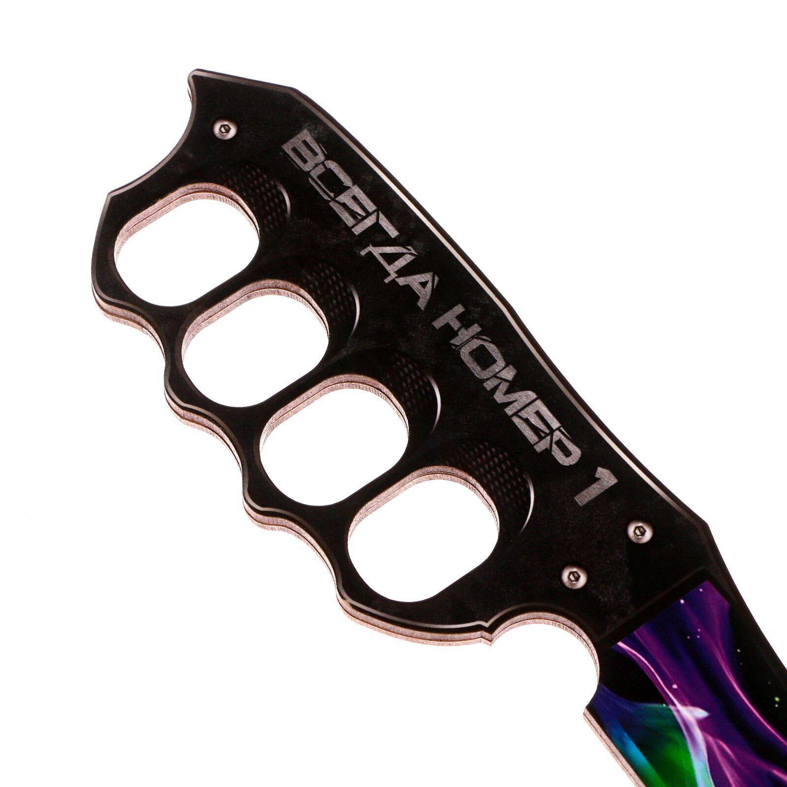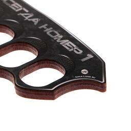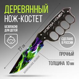Нож-костет из дерева не является холодным оружием, он изготовлен из фанеры высокого качества. Преимущество деревянного ножа в его прочности - он с усиленной ручкой в несколько слоёв. На детскую игрушку нанесен двухсторонний рисунок. Стильный дизайн игрушечного ножа, а также его форма притягивают внимание, за счёт наличия ручки-костета (размер отверстия 2,1 х 2,8 см). О веселой и динамичной игре мальчиков можно не беспокоиться - у них в руках безопасное оружие. Сувенирный нож не имеет острых краёв и не может посадить занозу или нанести вред. Нож игрушка тщательно отшлифован, клинок не заточен! Идеален как дополнение к подарку на 23 февраля, Новый Год или день рождения.