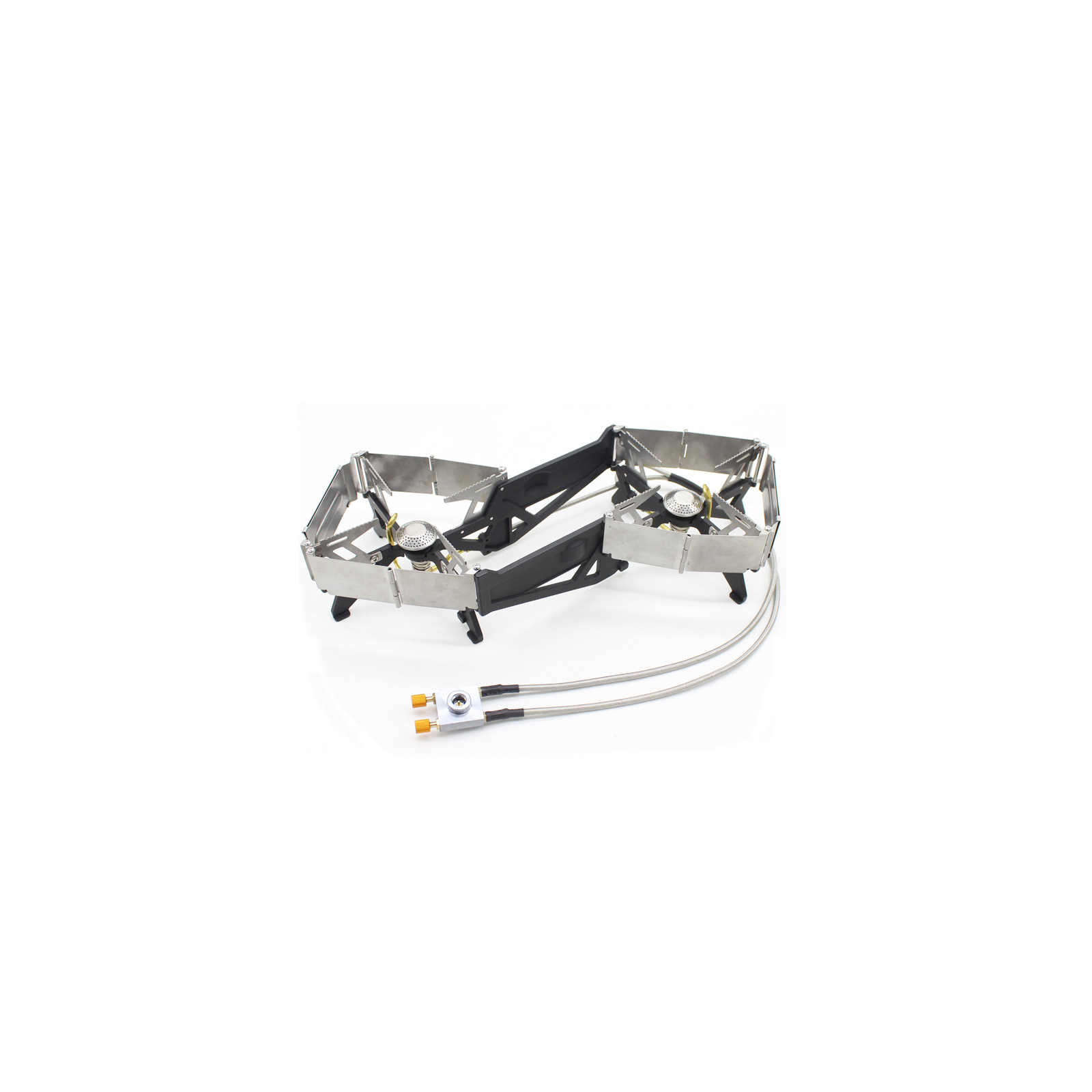 Газовий картридж кріпиться до різьбового з'єднання на кінці виносного шнура. Інтенсивність горіння кожної конфорки можна регулювати окремо за допомогою перемикачів, що обертаються.