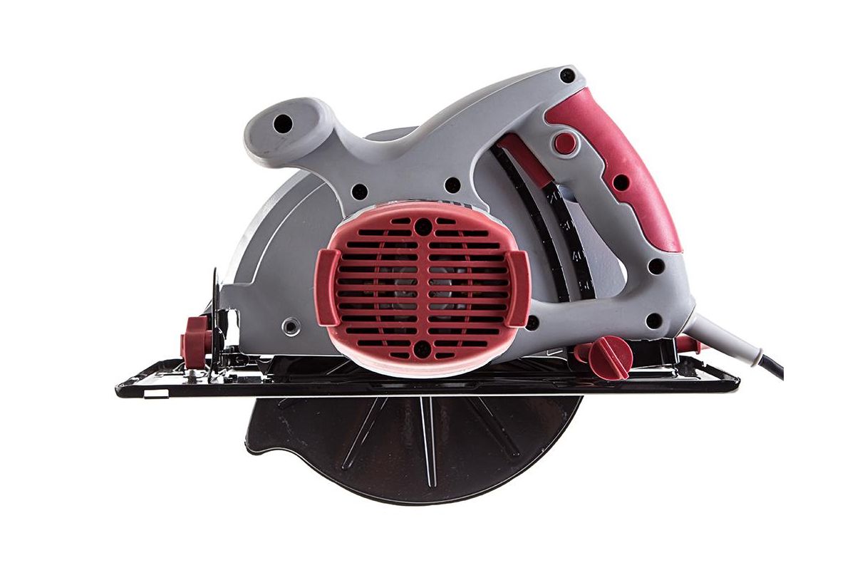 Пильный диск закрыт кожухом. Он приподнимается заготовкой, что снижает риск травм при работе.