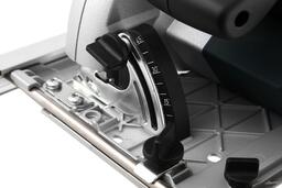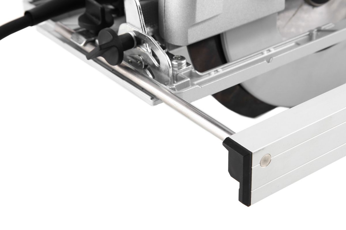 Разъем пылеотвода дисковой пилы Metabo KS 66 Plus проворачивается, следуя за движением инструмента. Он имеет стандартный размер и может использоваться для подключения большинства современных пылеудаляющих устройств. Устанавливать угол наклона и выбирать глубину пропила на этой модели можно будет быстро и без усилий. Выключатель и предохранитель, не допускающий случайного включения пилы, располагаются на большой петлеобразной рукоятке. Передняя рукоятка пилы так же достаточно большая и расположена так, чтобы управлять инструментом было удобно. В комплект циркулярной пилы Metabo KS 66 Plus входит удобный параллельный упор с двумя направляющими, который может устанавливаться справа или слева от инструмента. Данный упор расширяет возможности пилы и позволяет выполнять максимально точные пропилы. Широкая направляющая обладает хорошей устойчивостью и может устанавливаться в паз в передней или задней части пилы, что позволяет аккуратно выполнять погружные пропилы.