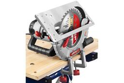 - Бесступенчатая регулировка глубины пиления и угла наклона удобными эксцентриковыми рычажками в одно движение;