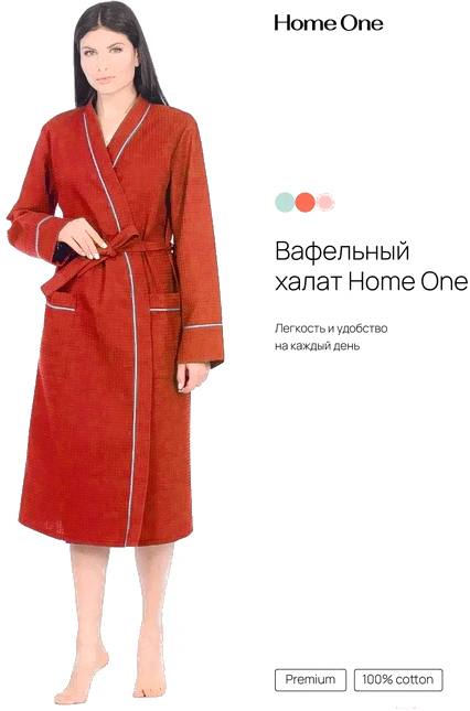 Халат Home One С кантом / 380794 (р-р 44, коралловый)
