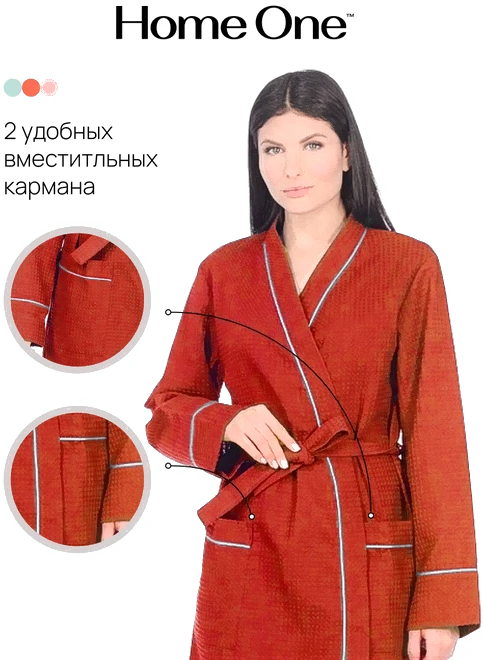 Халат Home One С кантом / 380796 (р-р 48, коралловый)