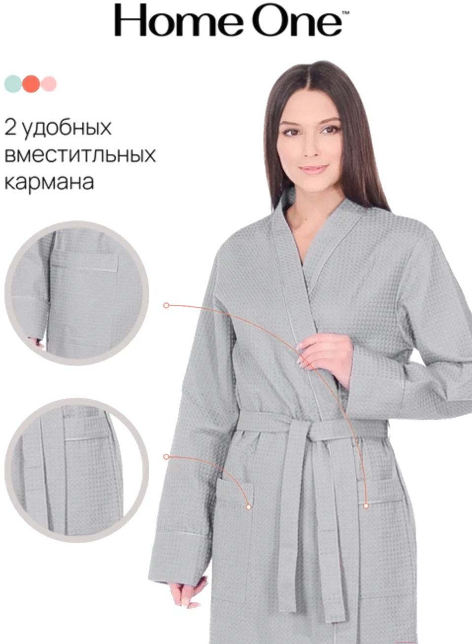 Халат Home One С кантом / 364578 (р-р 60, серый)