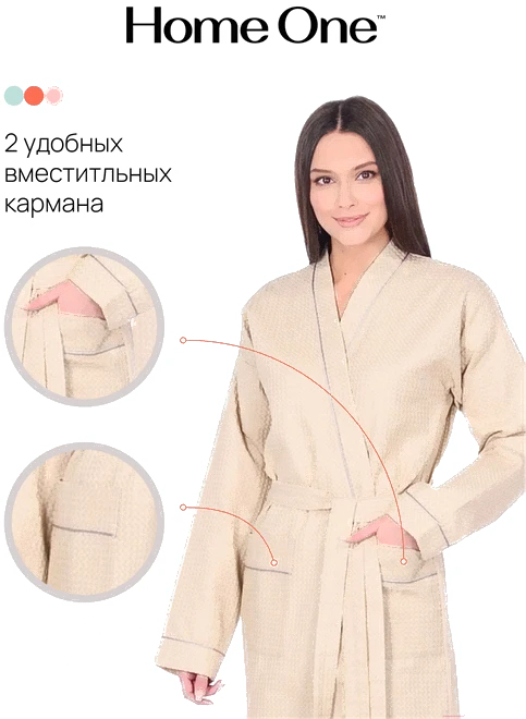Халат Home One С кантом / 364563 (р-р 58, бежевый)