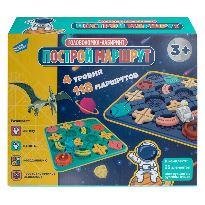 Головоломка-лабиринт "Построй маршрут" (Космос) - увлекательная настольная игра от белорусской компании Dream Makers, которая поможет вам и вашим друзьям проверить свой уровень логики, координации и пространственного мышления! В этой увлекательной игре потребуется не только умственная сноровка, но интуиция и сообразительность!