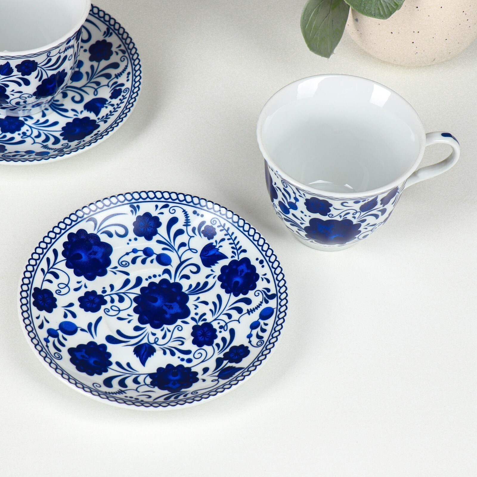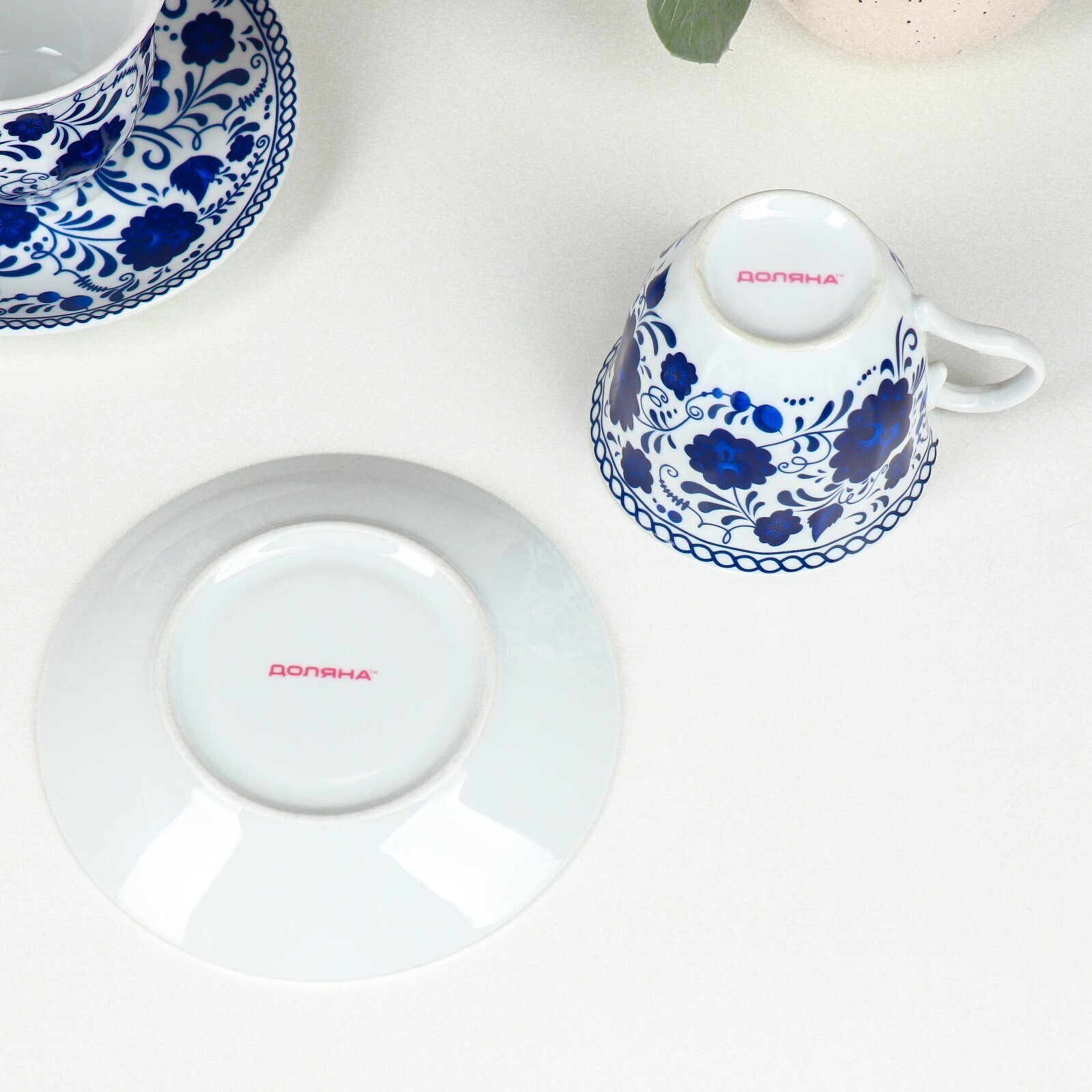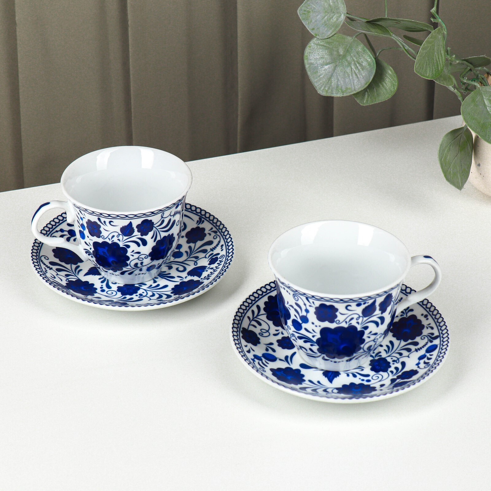 Набор чайный керамический Доляна «Русский узор», 4 предмета: 2 чашки 210 мл, 2 блюдца d=14,1 см, цвет синий