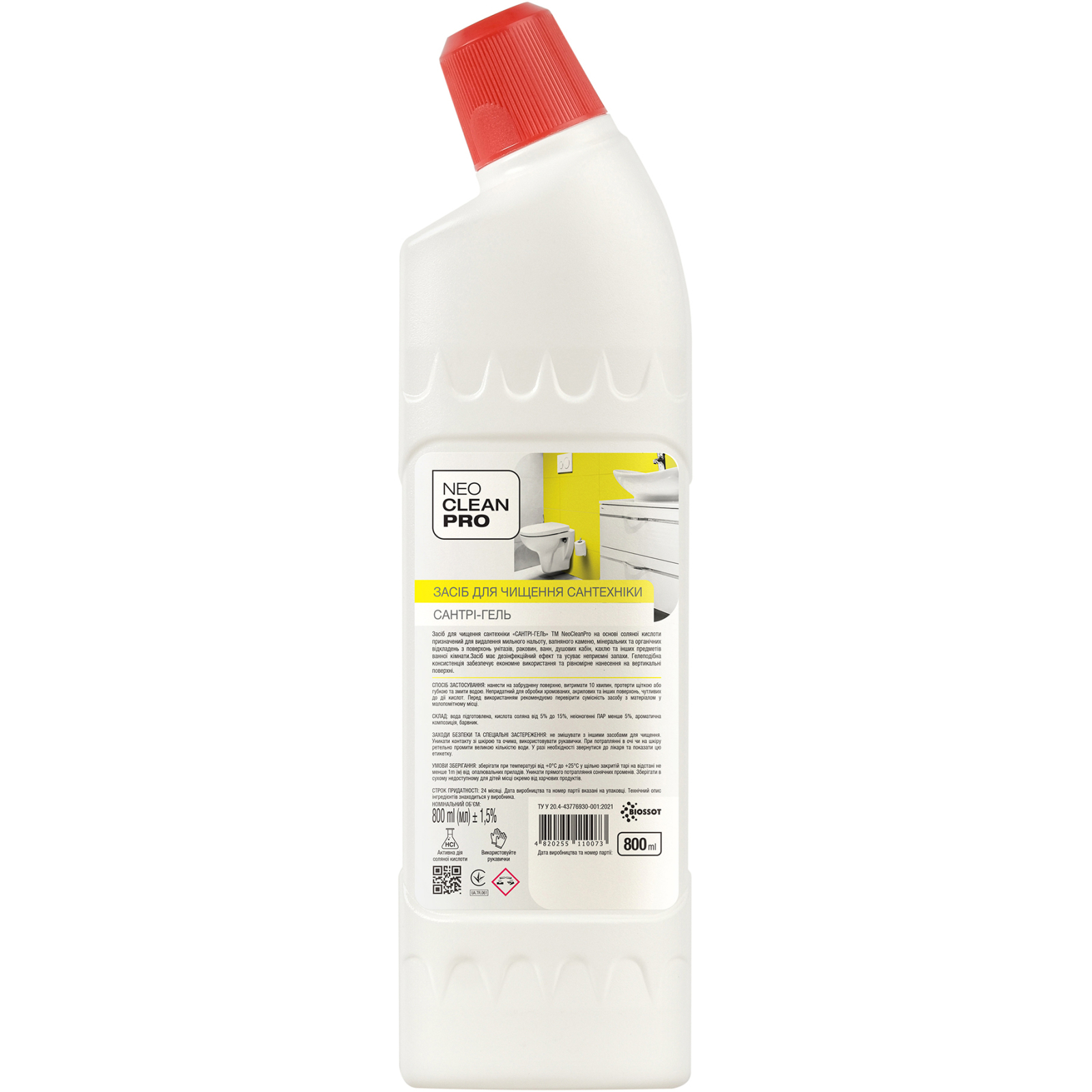 Засіб Biossot NeoCleanPro Сантрі-гель на основі соляної кислоти. Призначений для видалення мильного нальоту, вапняного каменю, мінеральних та органічних відкладень з поверхонь унітазів, раковин, ванн, душових кабін, кахлю та інших предметів ванної кімнати.