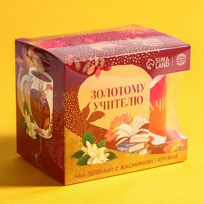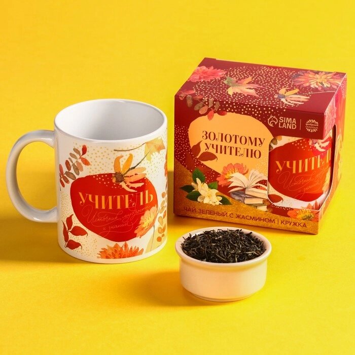 Подарочный набор «Золотому учителю»чай зелёный с жасмином 50 г., кружка 300 мл.