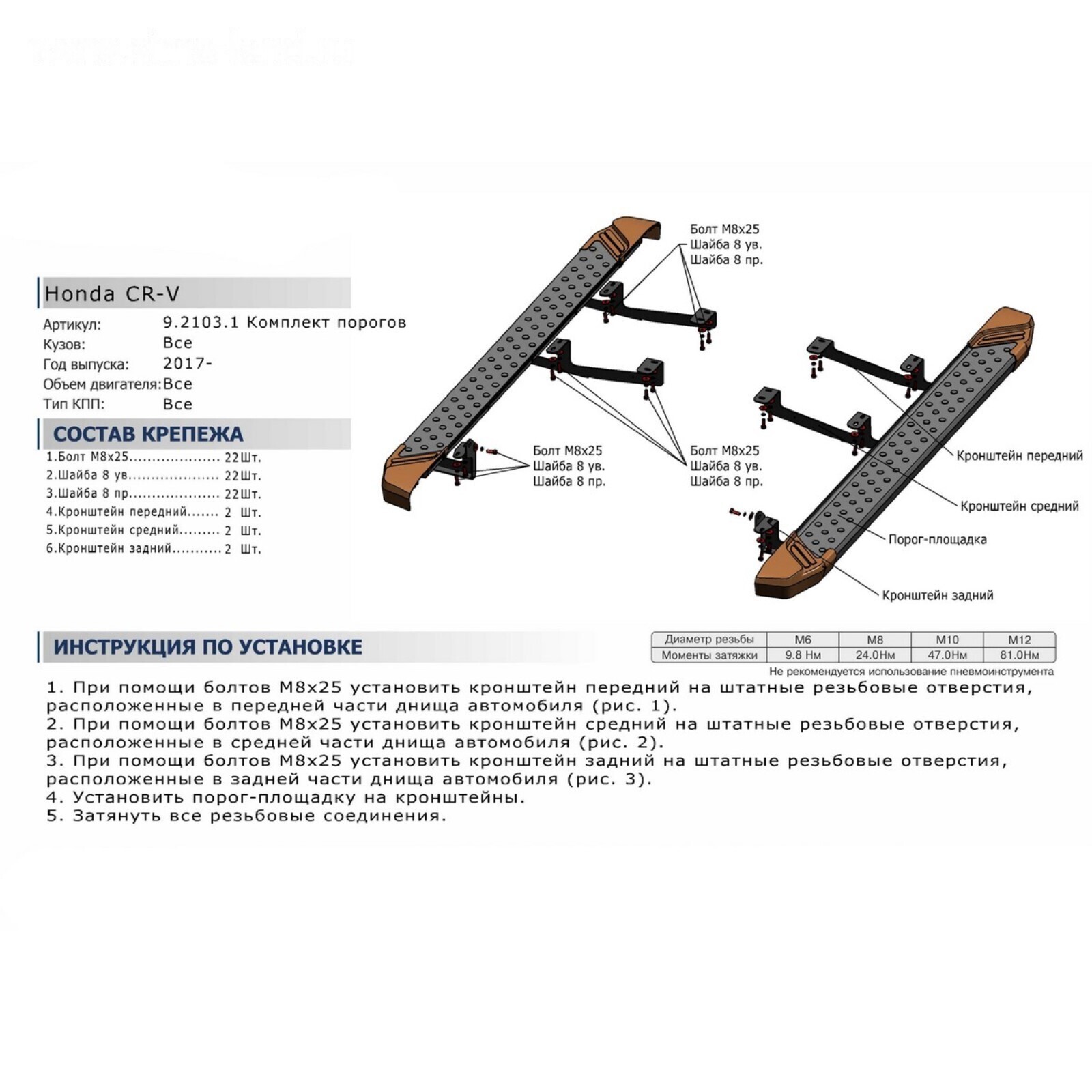 Порог-площадка "Black" RIVAL, Honda CR-V 2017-н.в., с крепежом, F173ALB.2103.1