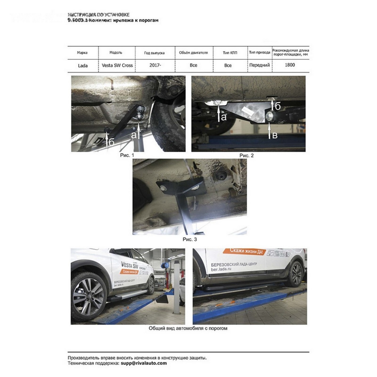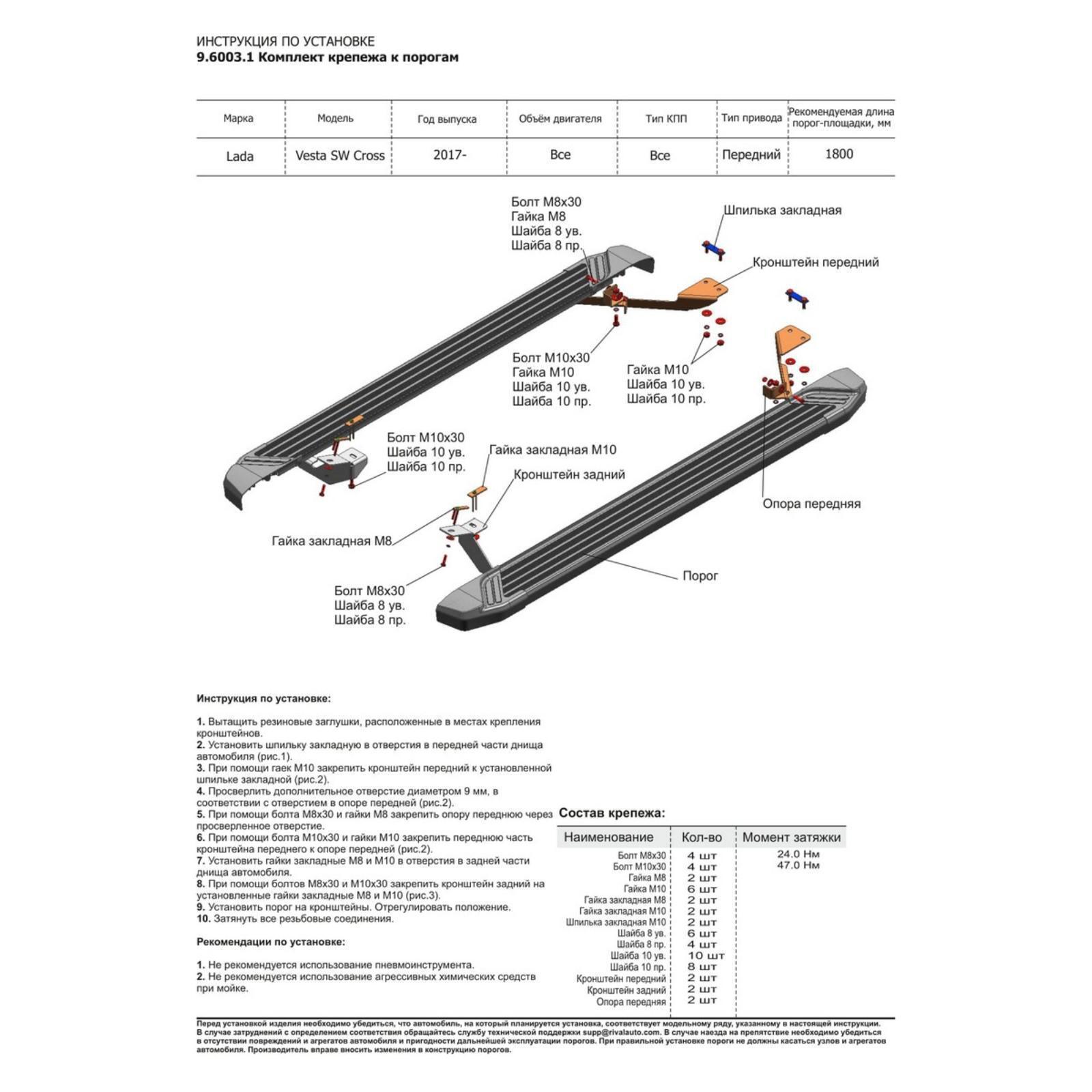 Пороги на автомобиль "Silver" Rival для Lada Vesta Cross универсал 2017-н.в., 180 см, 2 шт., алюминий, F180AL.6003.1