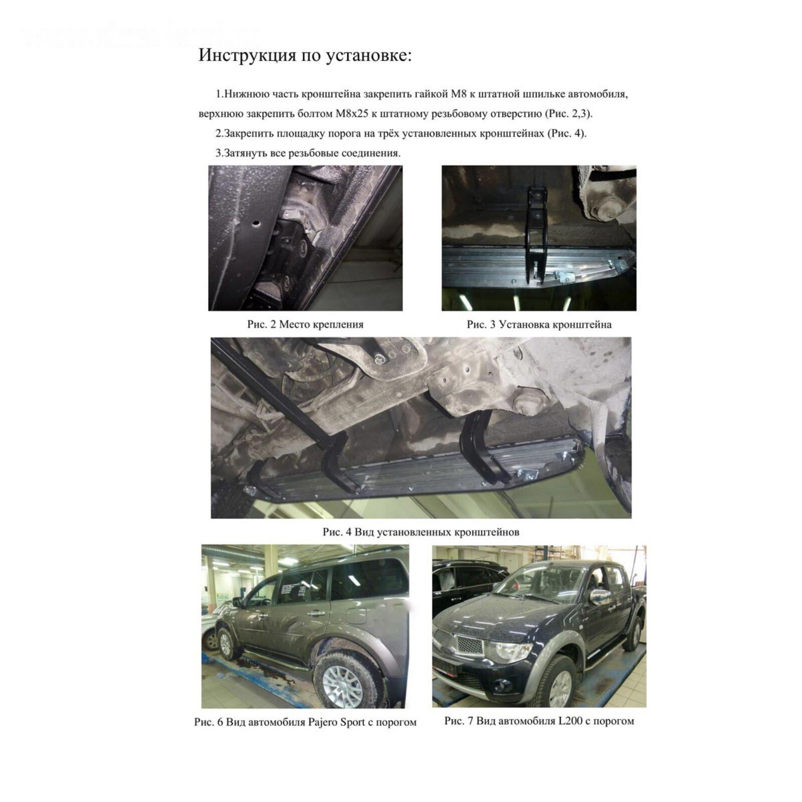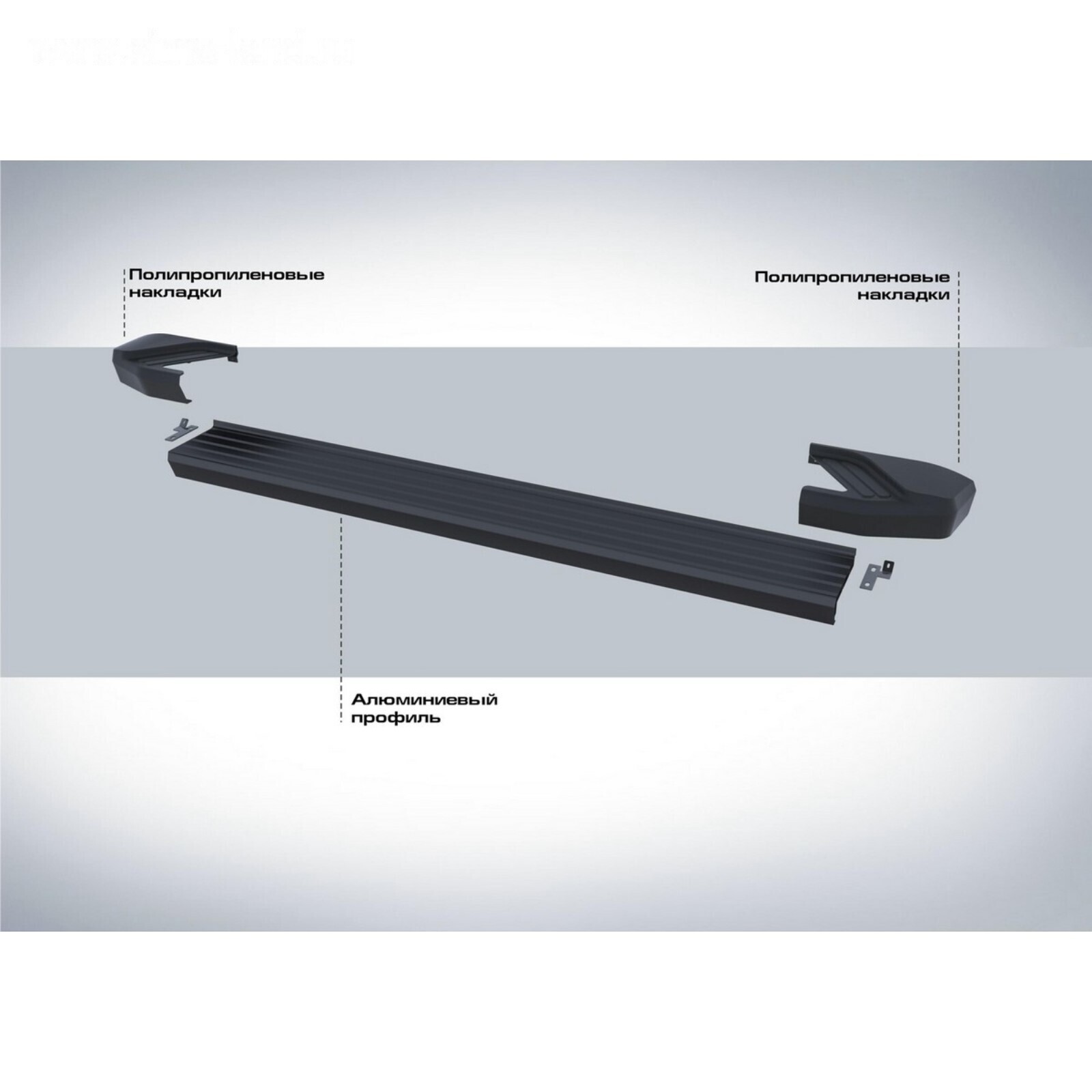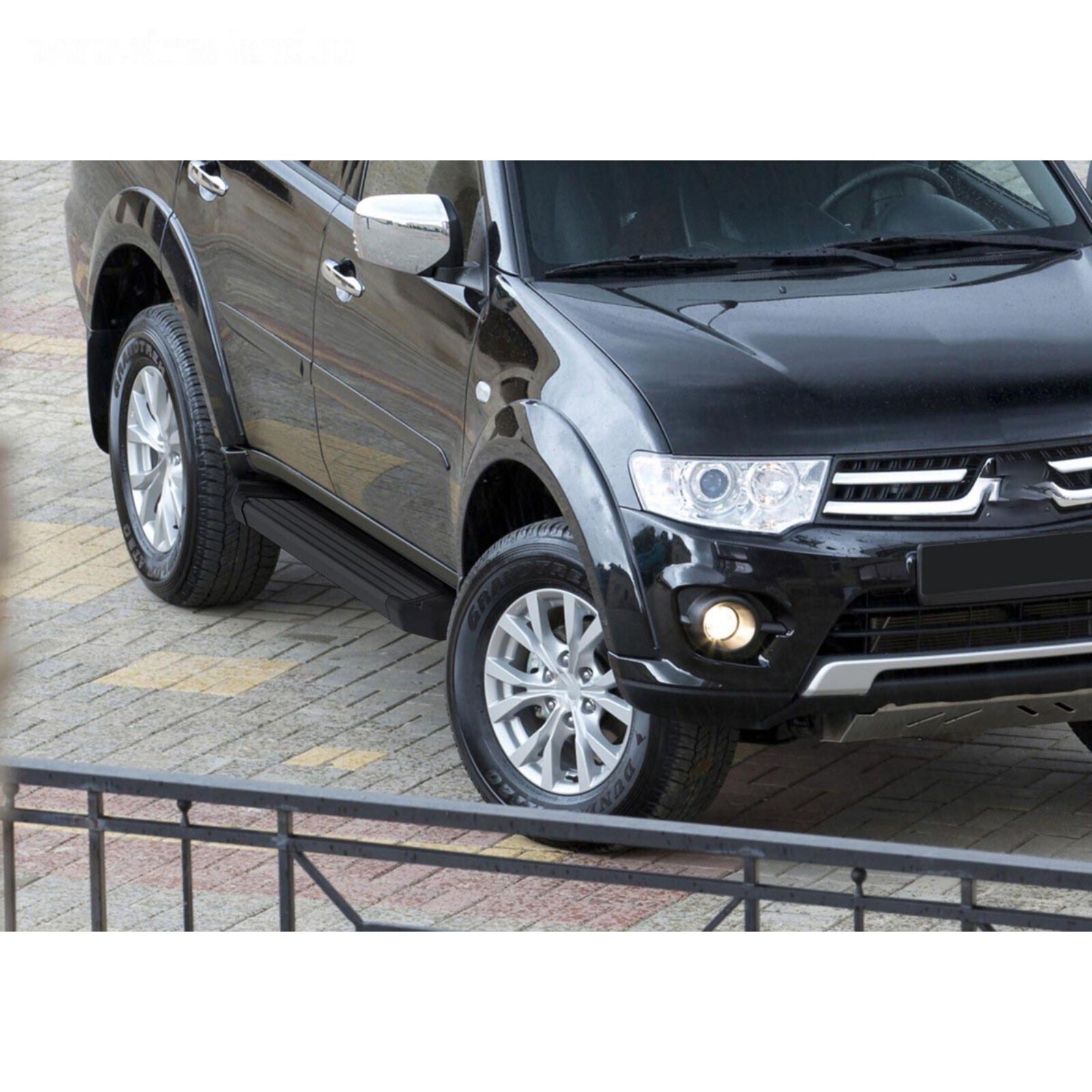 Пороги на автомобиль "Black" Rival для Mitsubishi Pajero Sport II 2008-2016, 173 см, 2 шт., алюминий, F173ALB.4003.1