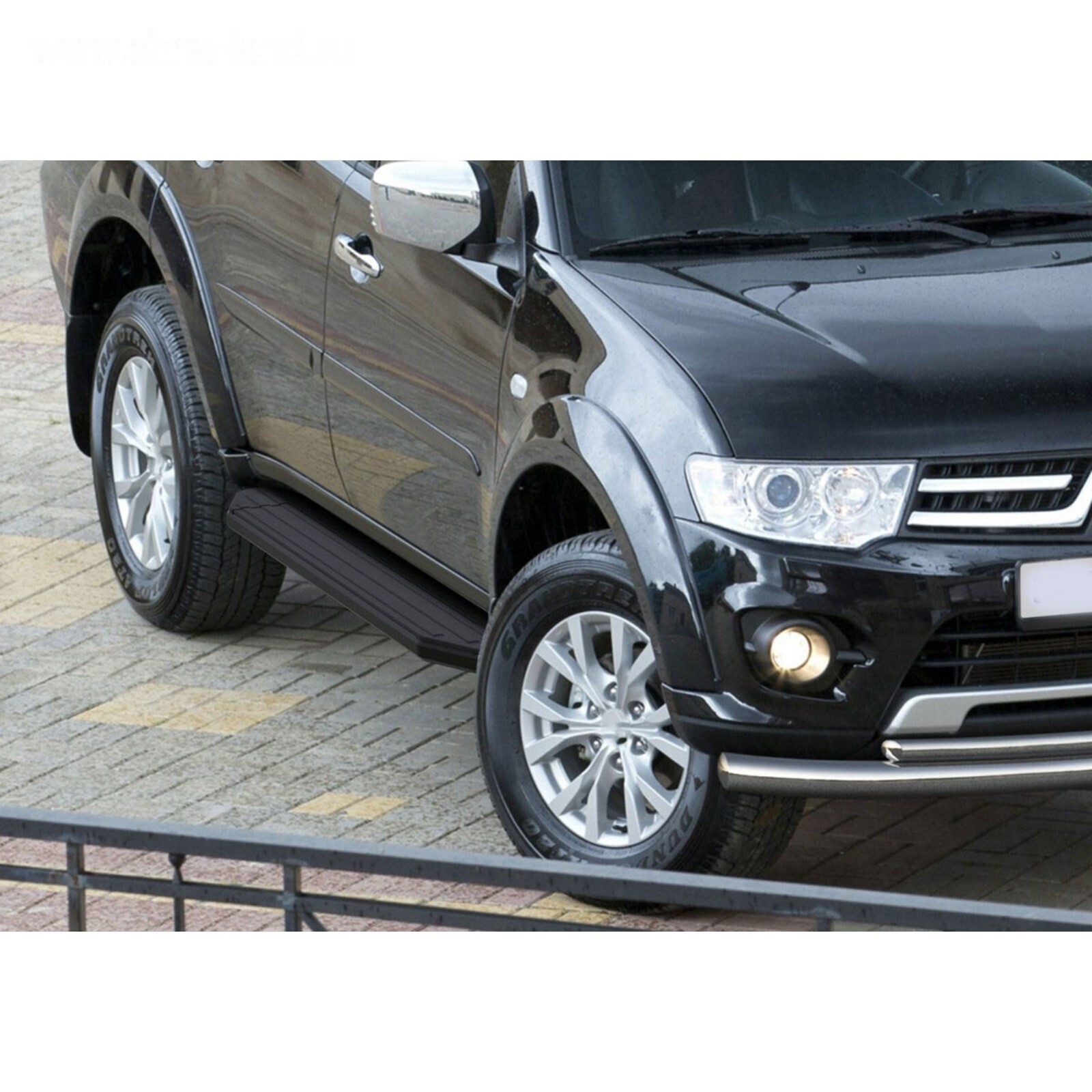 Пороги на автомобиль "Premium-Black" Rival для Mitsubishi Pajero Sport II 2008-2016, 173 см, 2 шт., алюминий, A173ALB.4003.1