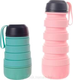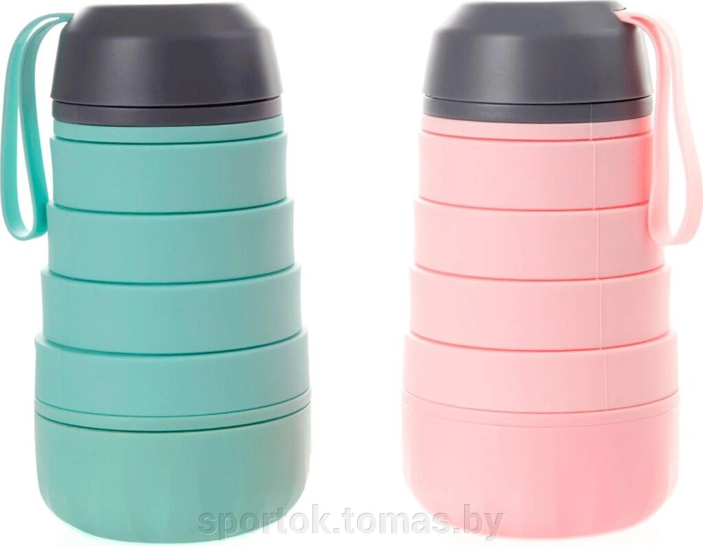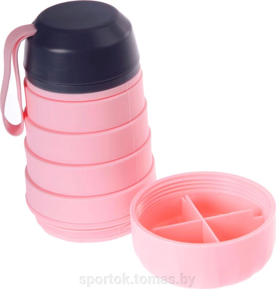 Силиконовая складная бутылка с отсеком для таблеток, розовая