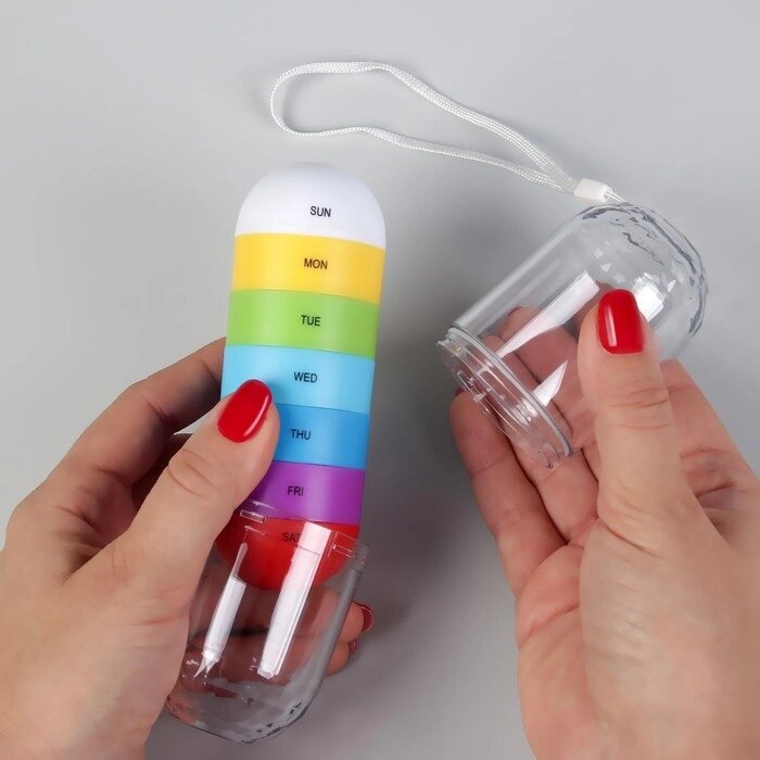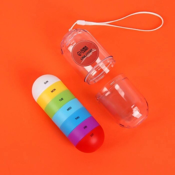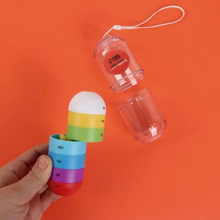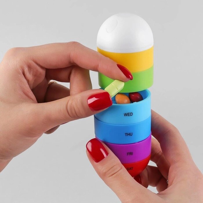 Таблетница-органайзер "Неделька", английские буквы, 7 выдвижных контейнеров в пластиковом футляре, цвет