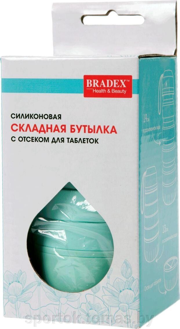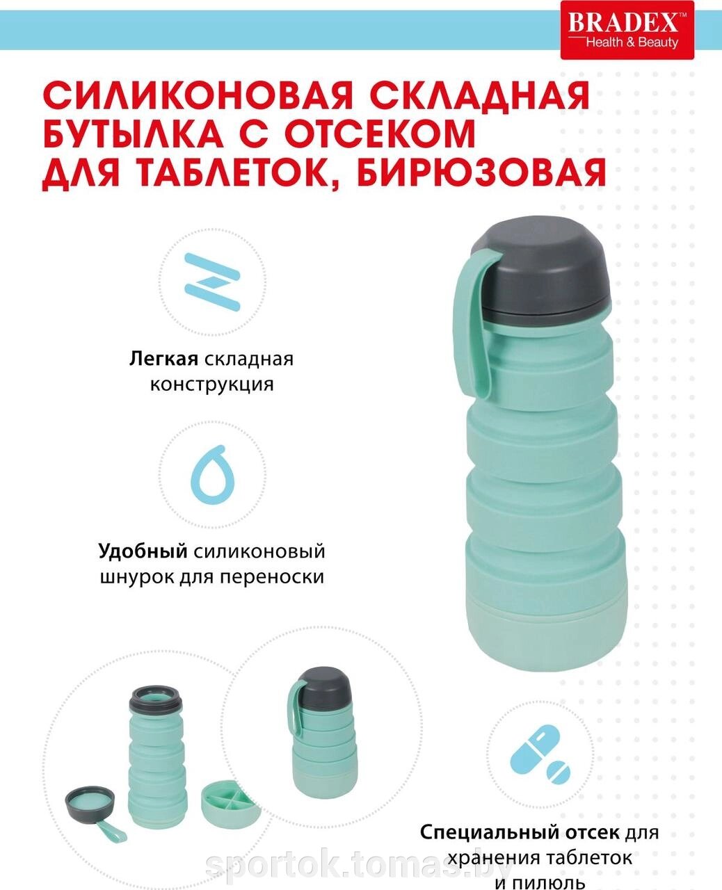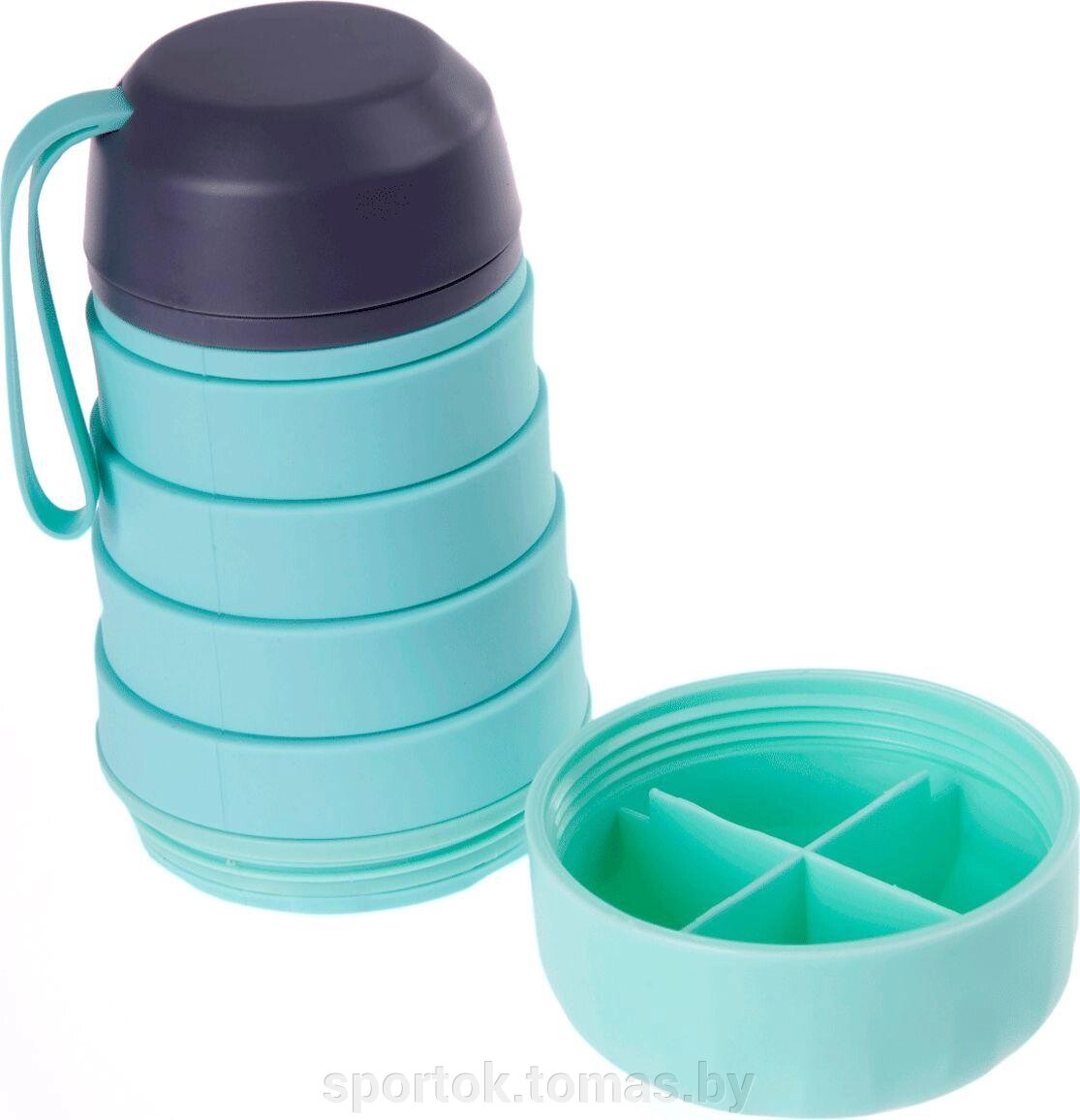 Силиконовая складная бутылка с отсеком для таблеток, бирюзовая