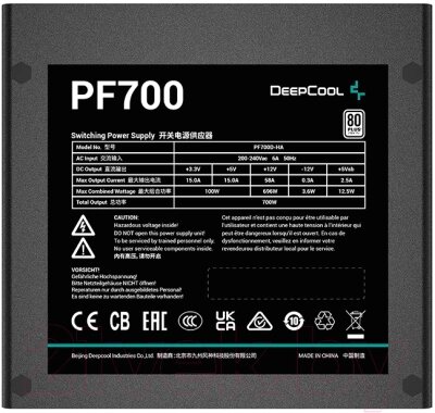 Блок питания для компьютера Deepcool PF700 (R-PF700D-HA0B-EU)