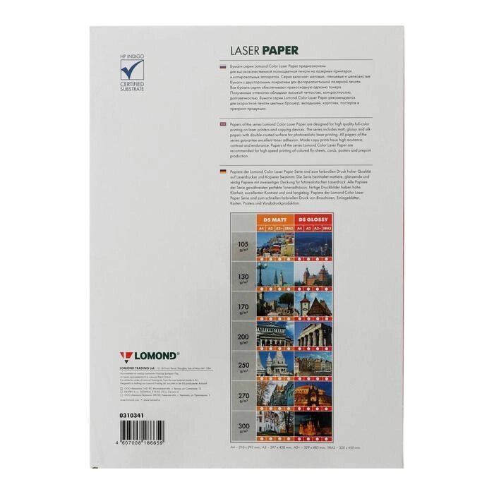 Фотобумага для лазерной печати А4 LOMOND, 310341, 200 г/м²250 листов, двусторонняя, глянцевая