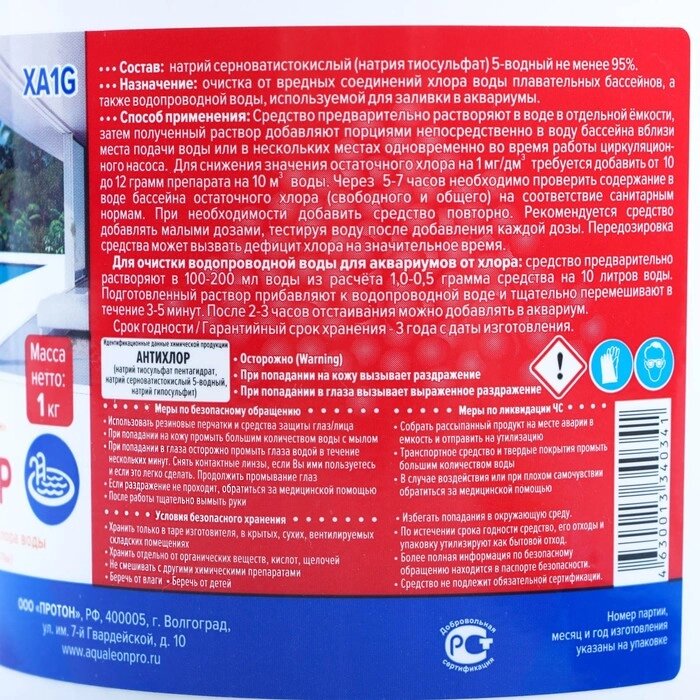 Антихлор Aqualeon, 1 кг
