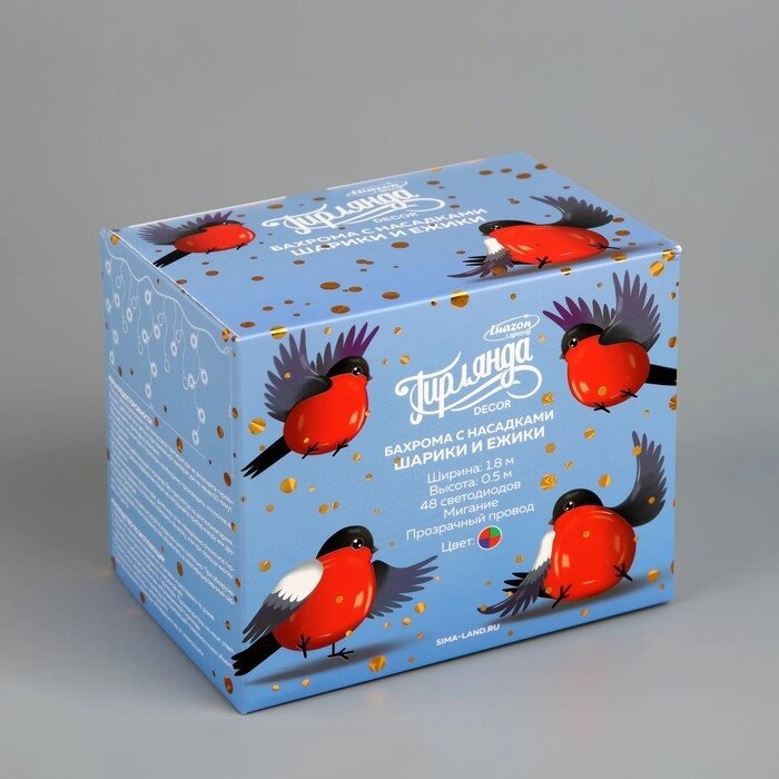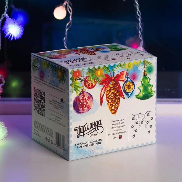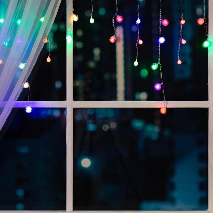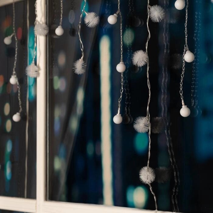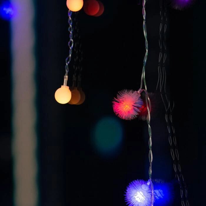 Гирлянда "Бахрома" 1.8 х 0.5 м с насадками "Шарики и ёжики", IP20, прозрачная нить, 48 LED,