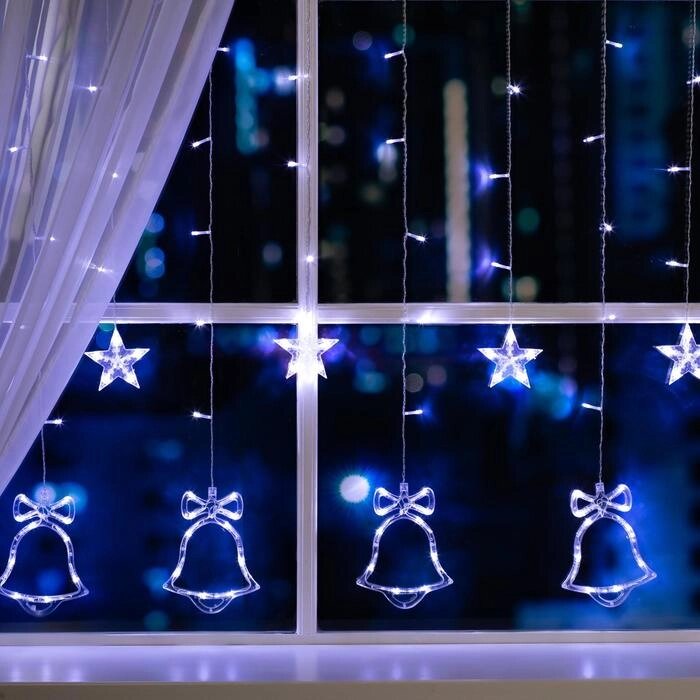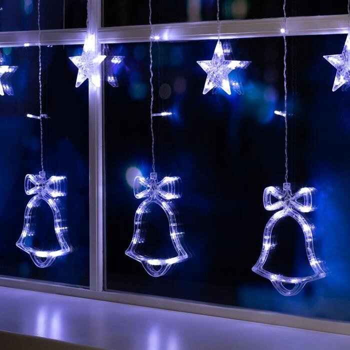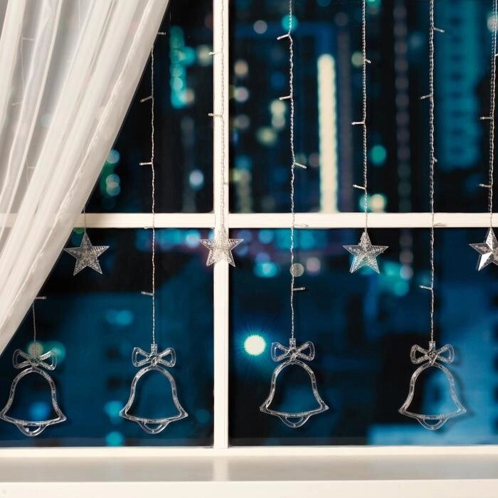 Гирлянда "Бахрома" 2.4 х 0.9 м с насадками "Колокольчики", IP20, прозрачная нить, 138 LED, свечение