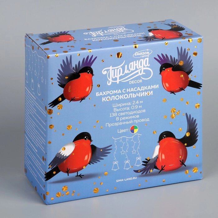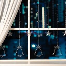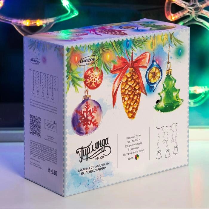 Гирлянда "Бахрома" 2.4 х 0.9 м с насадками "Колокольчики", IP20, прозрачная нить, 138 LED, свечение