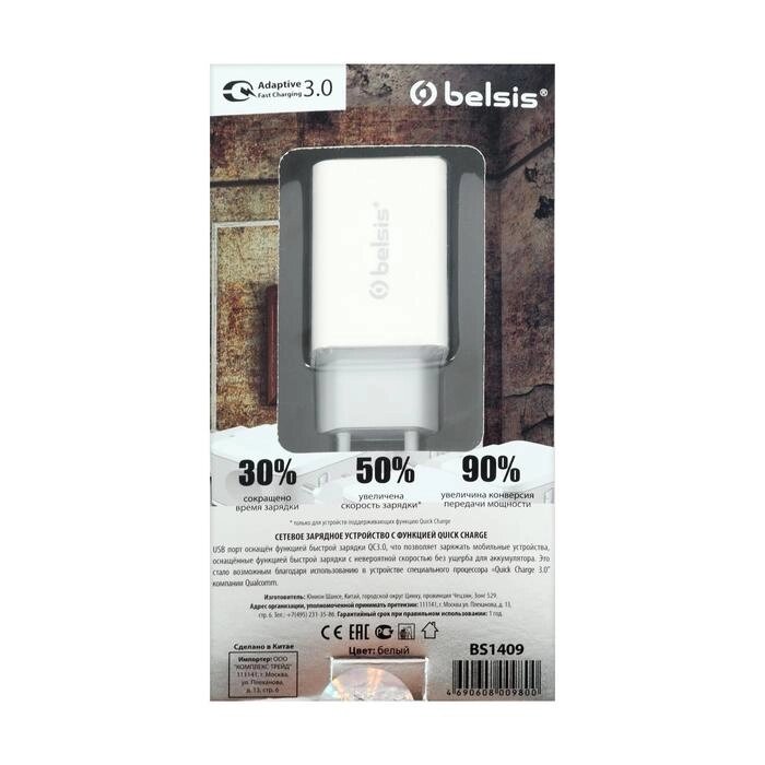 Сетевое зарядное устройство Belsis, 2хUSB, 3.6 А, QC 3.0, белое