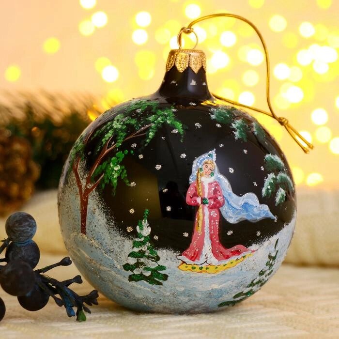 Ёлочный шар d-10 см "Девица в лесу" ручная роспись