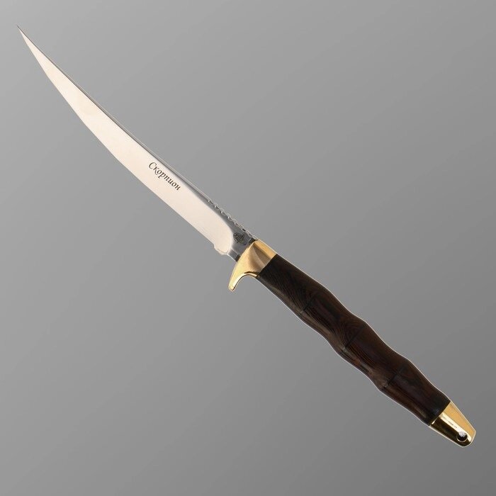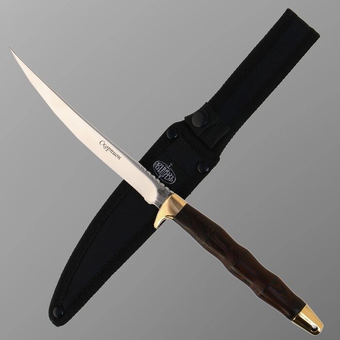 Нож разделочный "Скорпион" с чехлом, сталь - 65х13, рукоять - дерево, 14.5 см