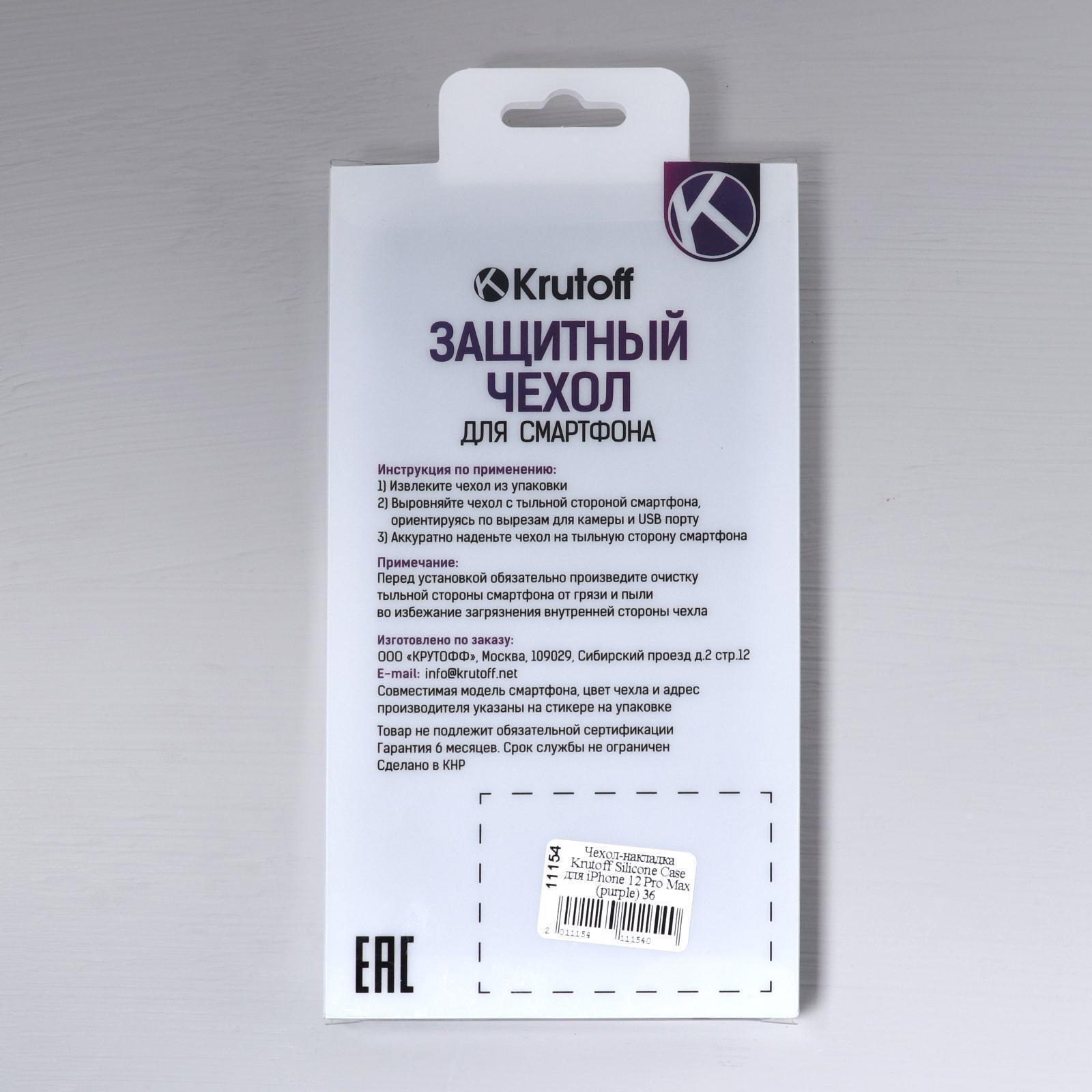 Чехол Krutoff, для iPhone 12 Pro Max, матовый, фиолетовый