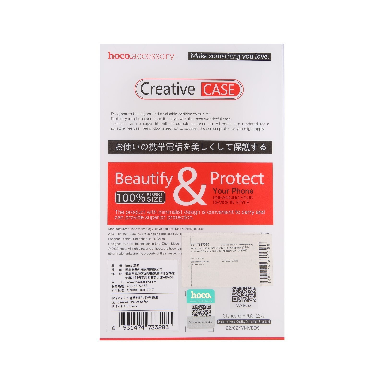 Чехол Hoco, для iPhone 12/12 Pro, полиуретан (TPU), толщина 0.8 мм, анти износ, прозрачный