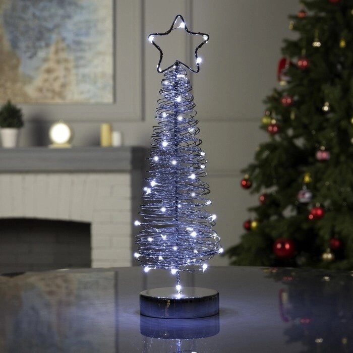 Елка плетеная светодиодная, 38х10х10 см, от батареек, БЕЛЫЙ