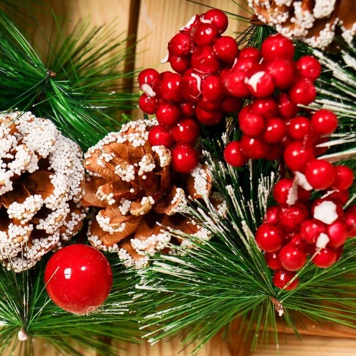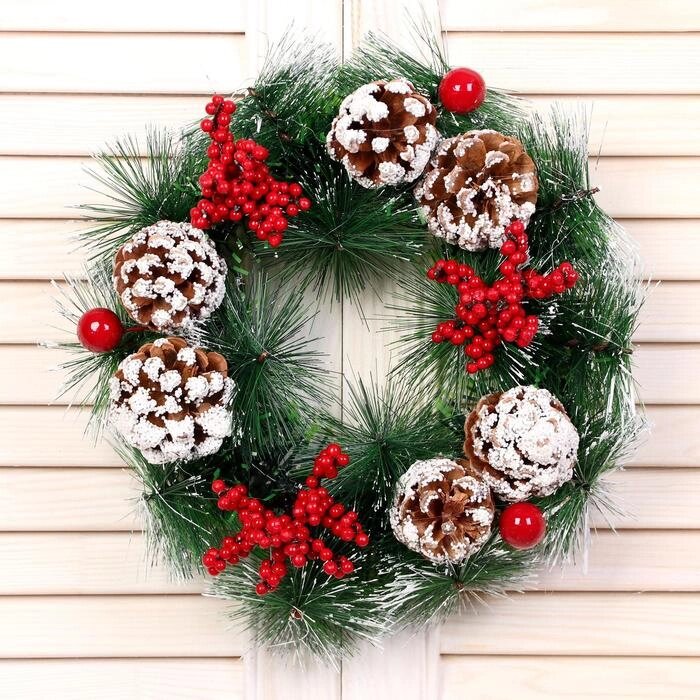 Венок новогодний d-25 см "Снежные шишки и ягодки"