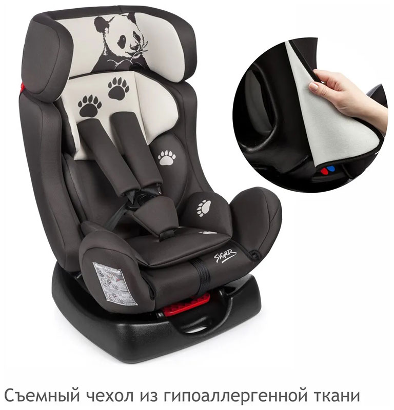 Автокресло Siger ''Диона'', гр. 0 /I/II, 0-25 кг, 0-7 лет, серо-бежевый, панда ,KRES3600