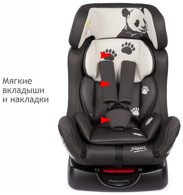 Мягкий подголовник, вкладыш, специальная ортопедическая спинка и накладки внутренних ремней повышают уровень комфорта во время поездки.