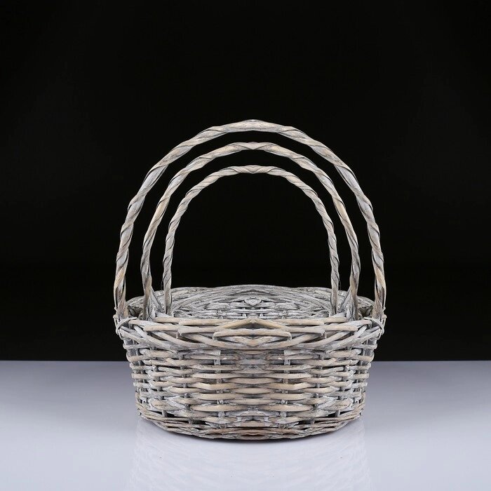 Набор корзин плетёных, ива, 3 шт., серо-бежевый цвет, средние