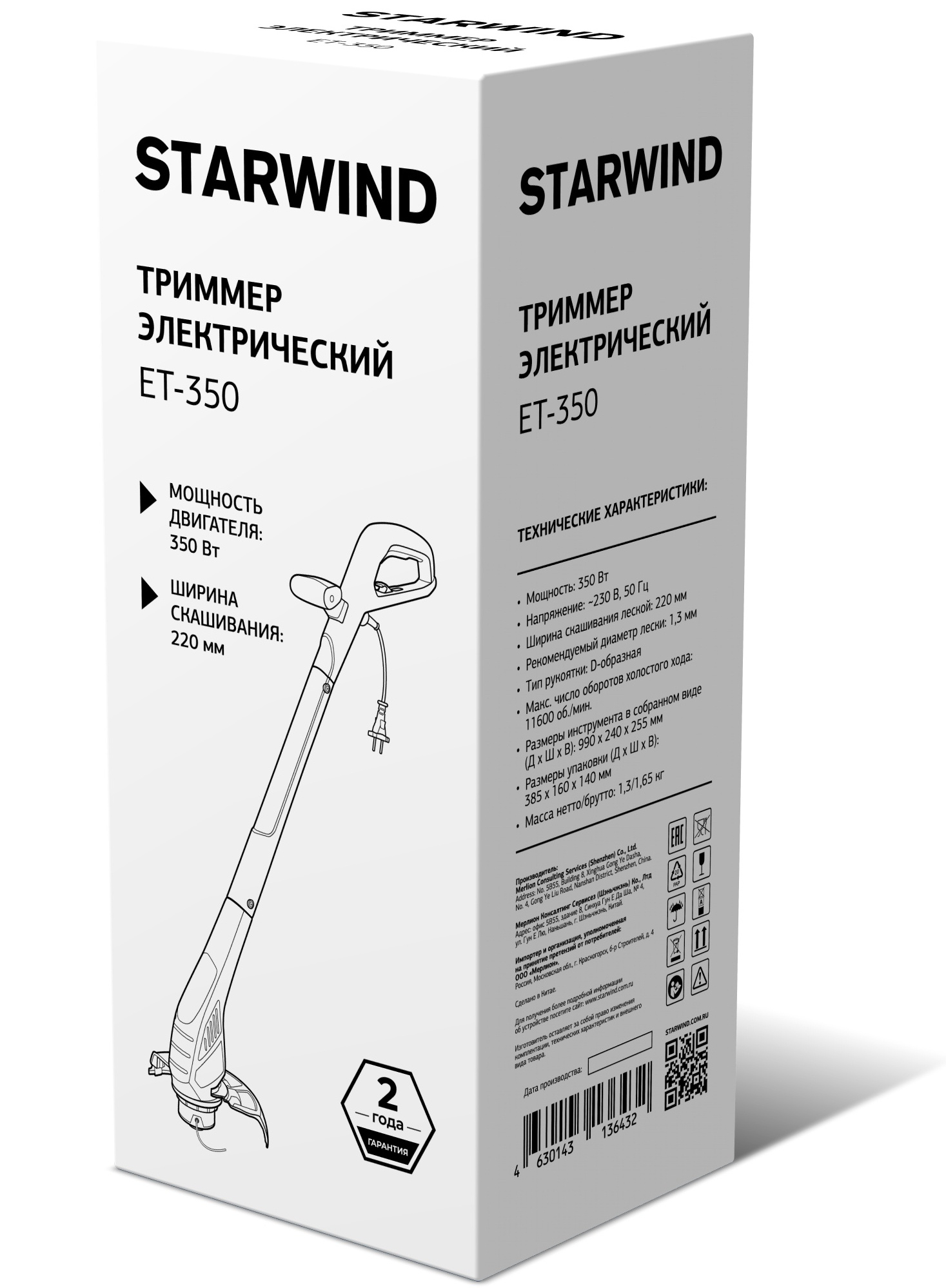Триммер электрический Starwind ET-350 350Вт неразбор.штан. реж.эл.:леска